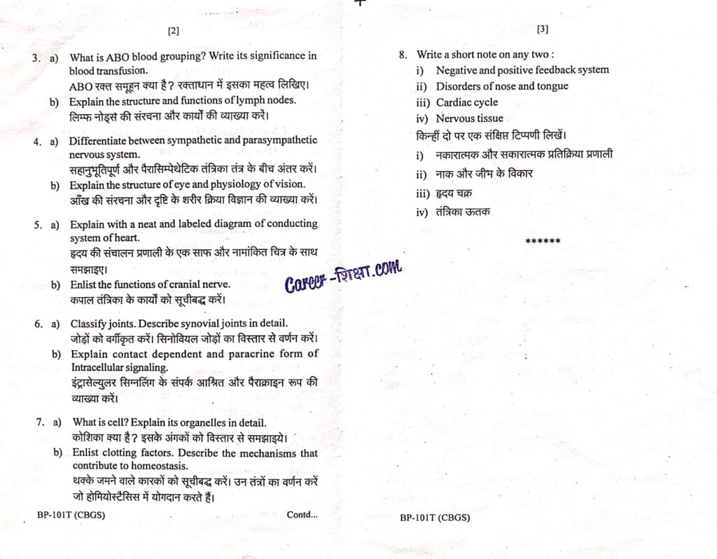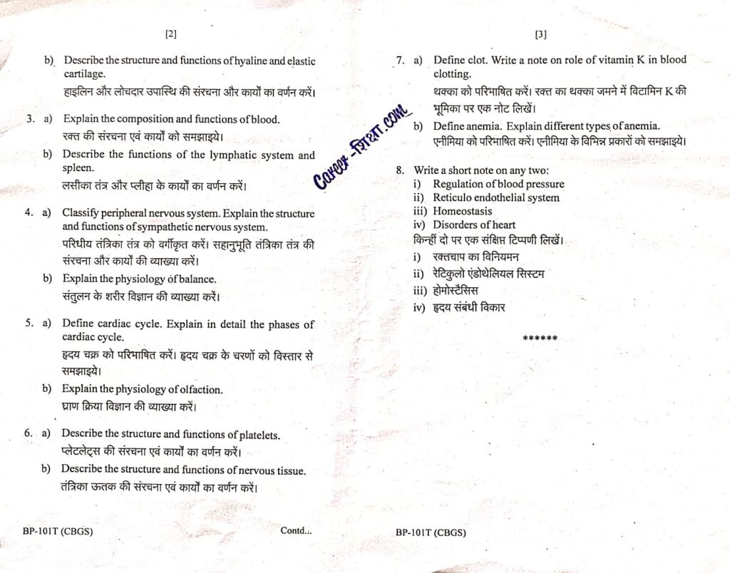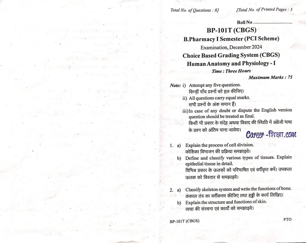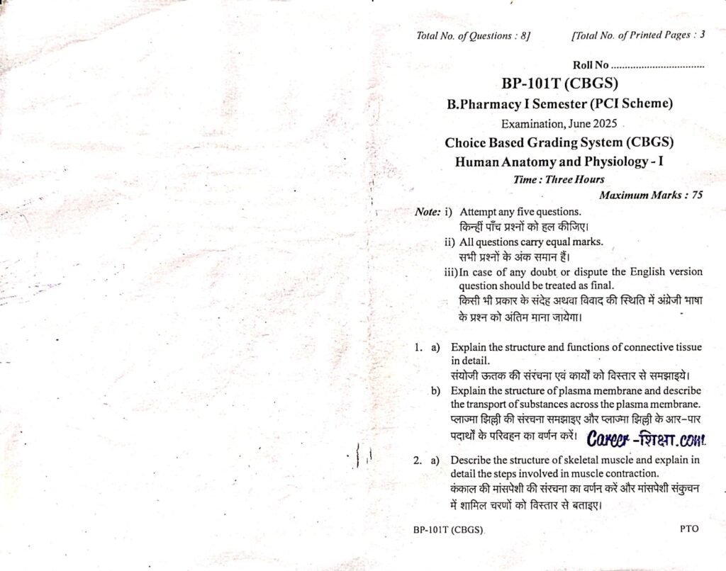 B.Pharma.(RGPV) Previous Year Question Paper BP-101T/PY-101 Human Anatomy and Physiology-I ( B.Pharmacy)