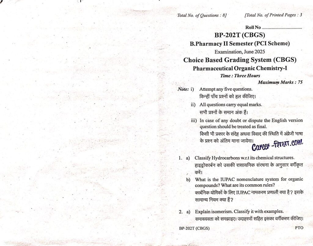 BP-202T Pharmaceutical Organic Chemistry-I, (June-2025)