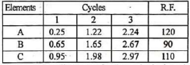 एक कार्य के तीन कार्य तत्वों का तीन चक्रों में स्टापवॉच से किया गया समय अध्ययन (मिनिटों में) नीचे दिया गया है।