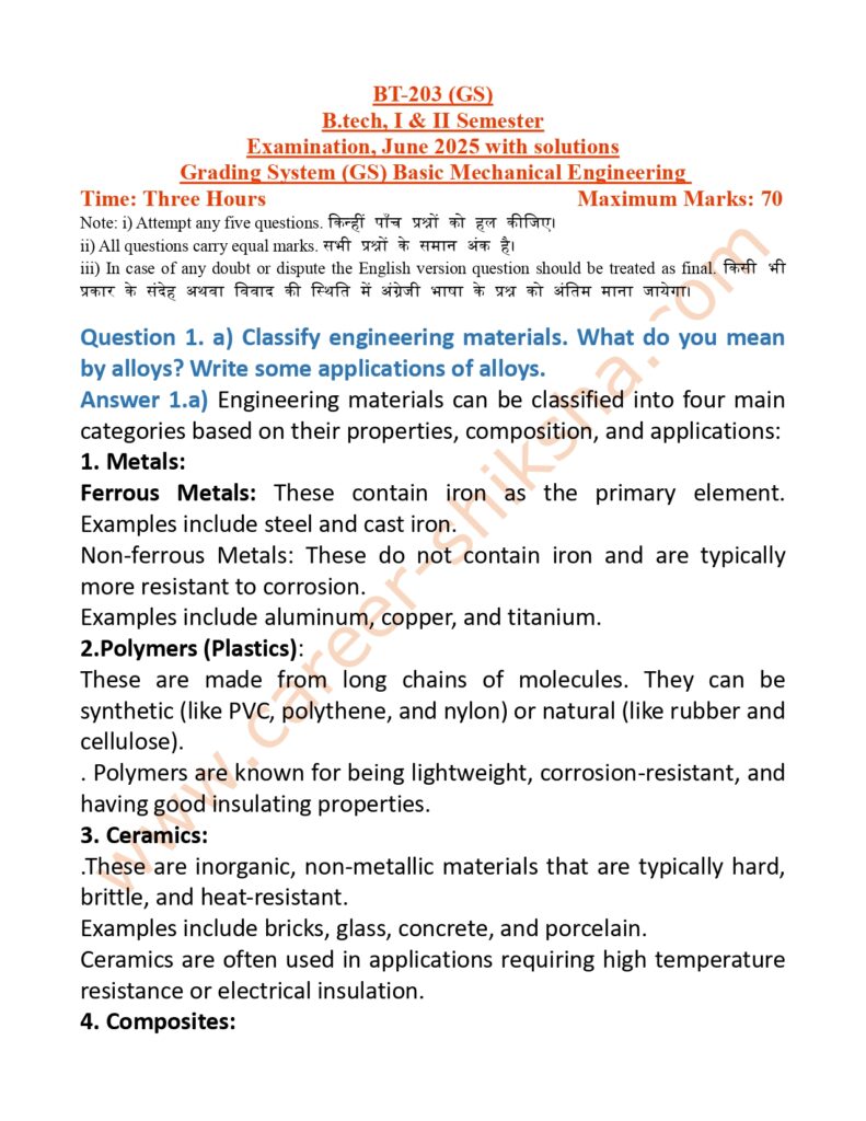 RGPV B.Tech. I & II Semester – June 2025 Question Paper Solution (BT-203) Basic Mechanical Engineering (B.Tech.)
