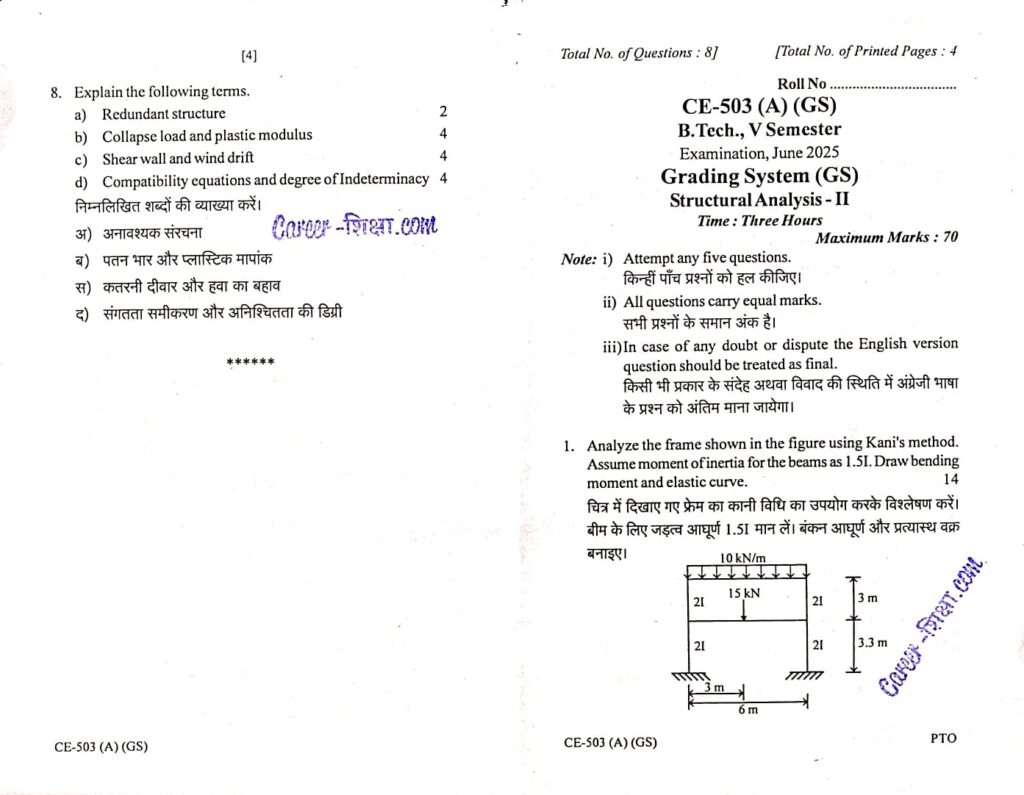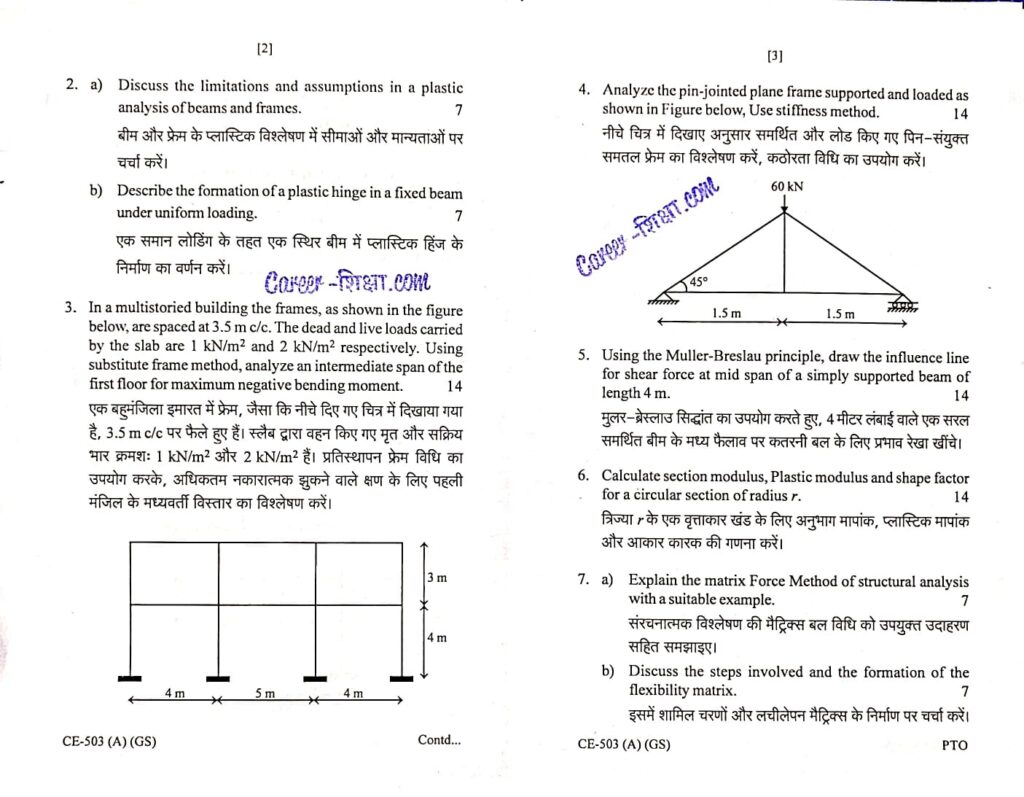 RGPV Previous/Old Year Question Paper CE-503(A) Structural Analysis-II (B.Tech.)