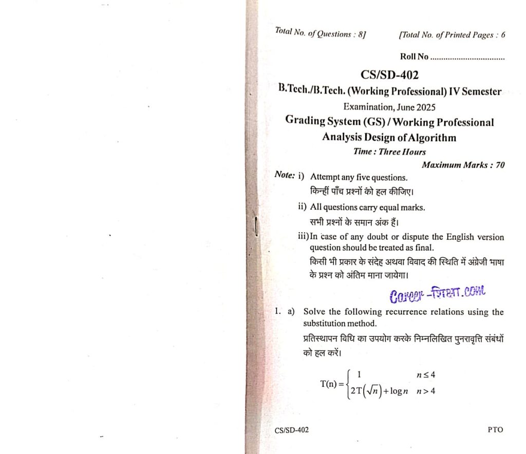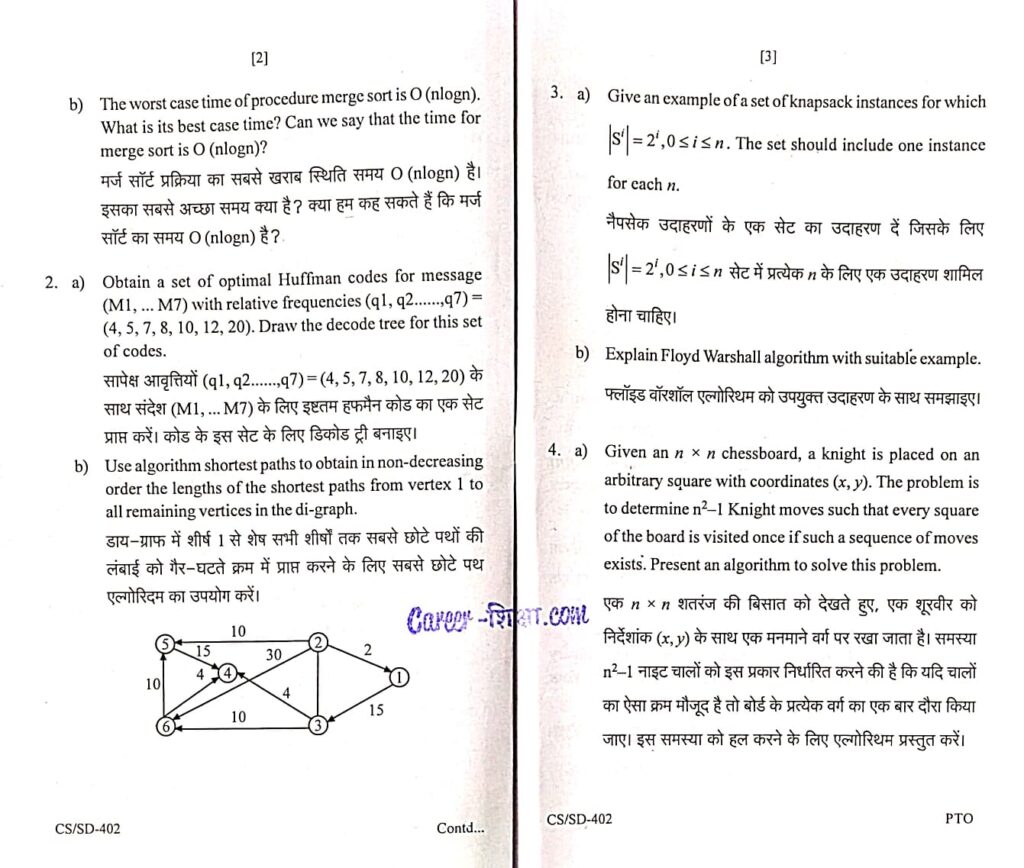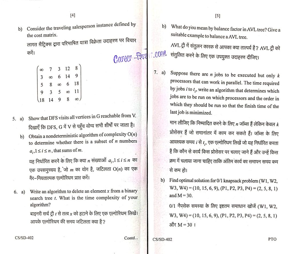 RGPV Previous/Old Year Question Paper (CS-402) Analysis Design of Algorithm (ADA) (B.Tech.)