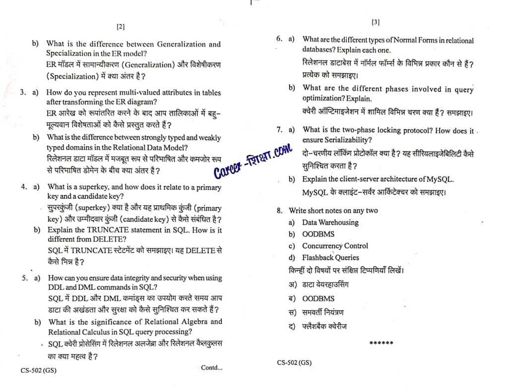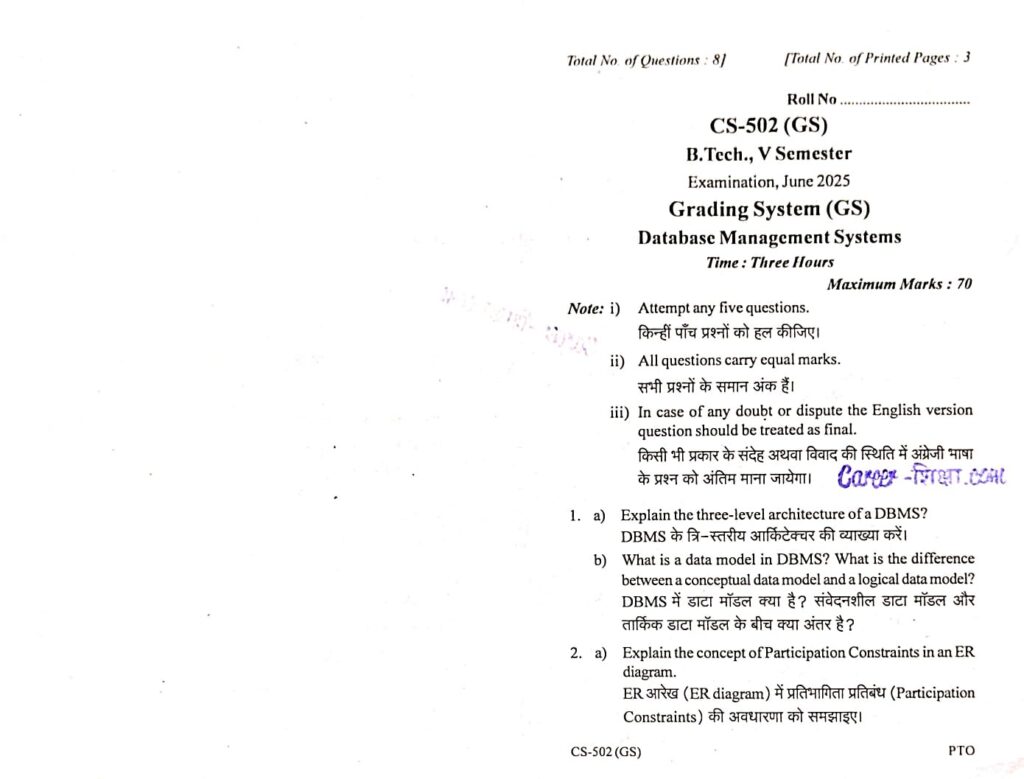 RGPV Previous/Old Year Question Paper CS-502 Database Management Systems (B.Tech. V Semester) for Computer Science Engineering Branch