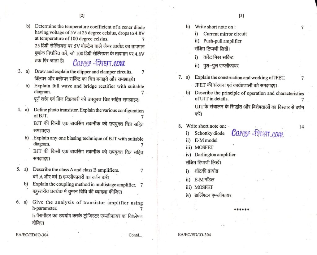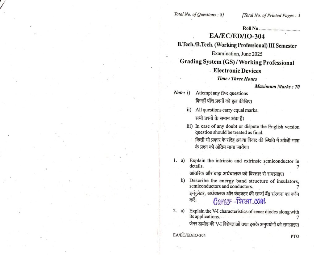 RGPV Previous/Old Year Question Paper (EC-304) Electronic Devices (B.Tech.)