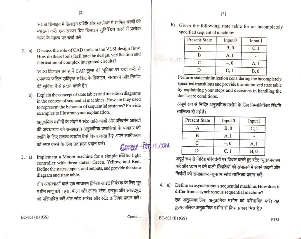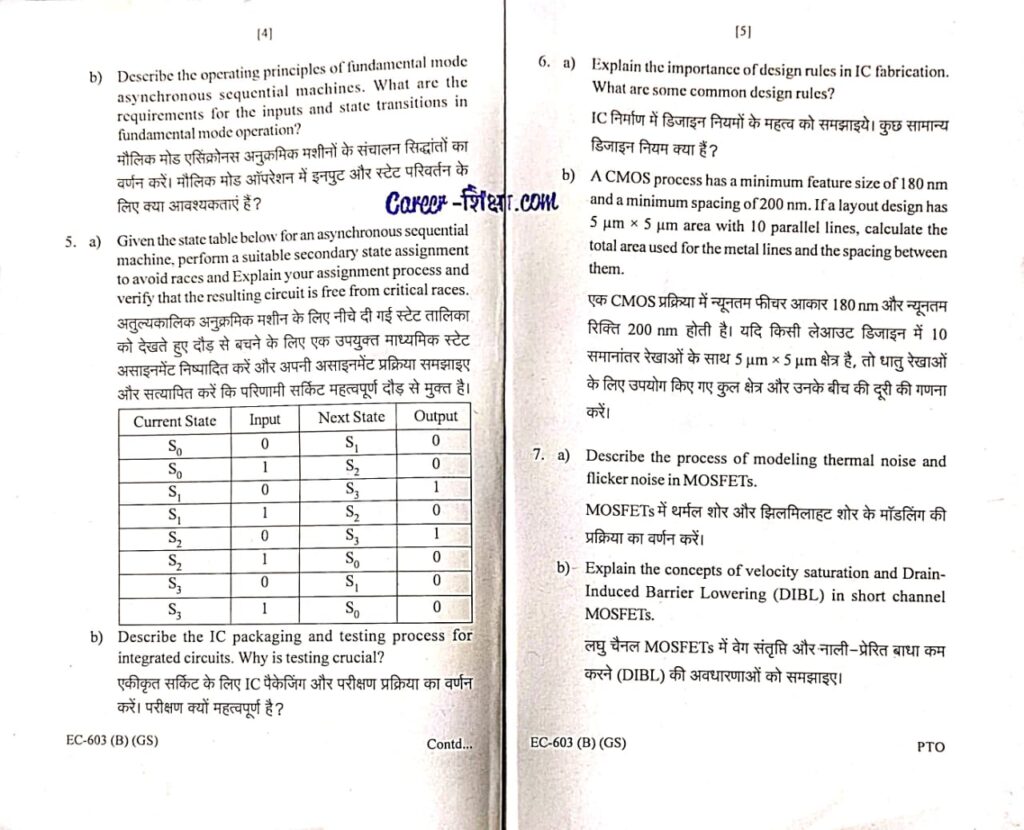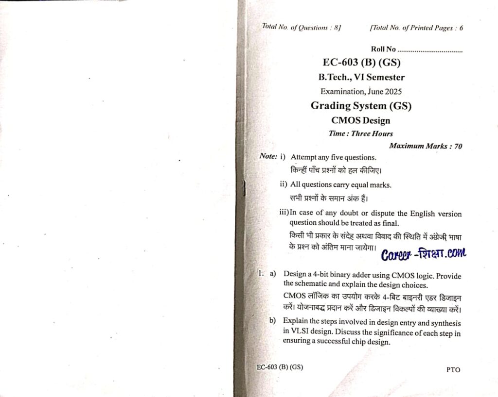 RGPV Previous/Old Year Question Paper EC-603 (B) CMOS Design (B.Tech. VI Semester) for Electronics and Communication Branch