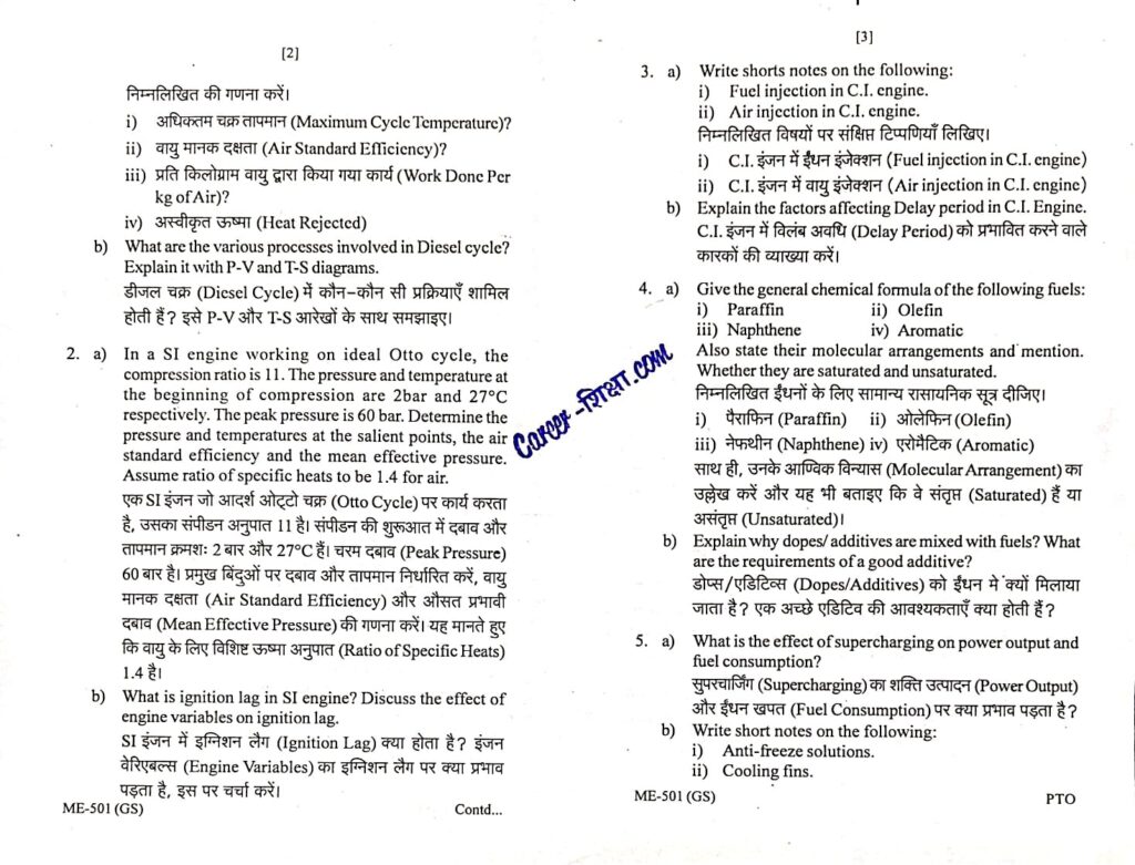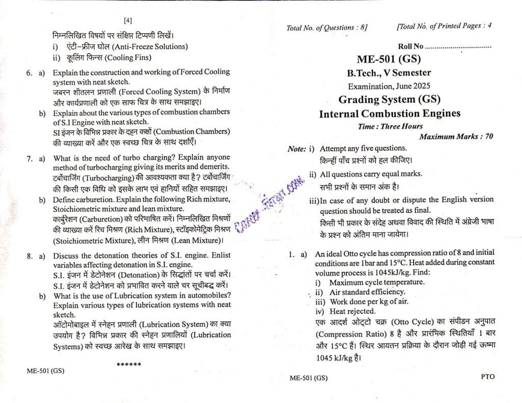 RGPV Previous/Old Year Question Paper (ME-501) Internal Combustion Engines (B.Tech.)