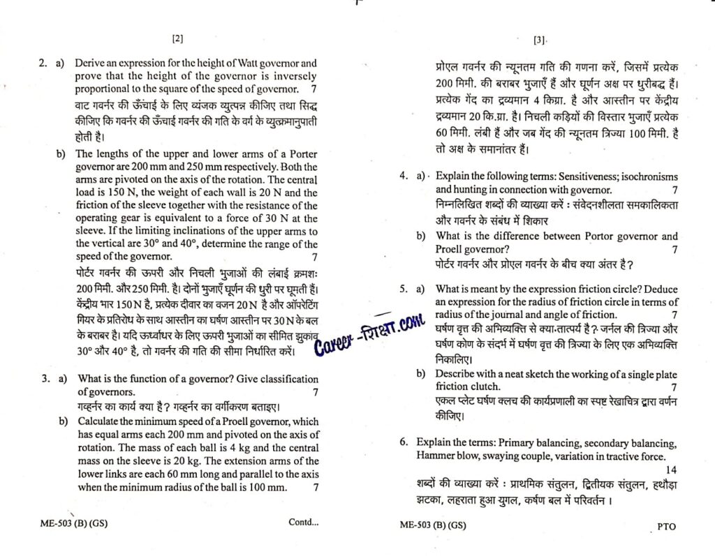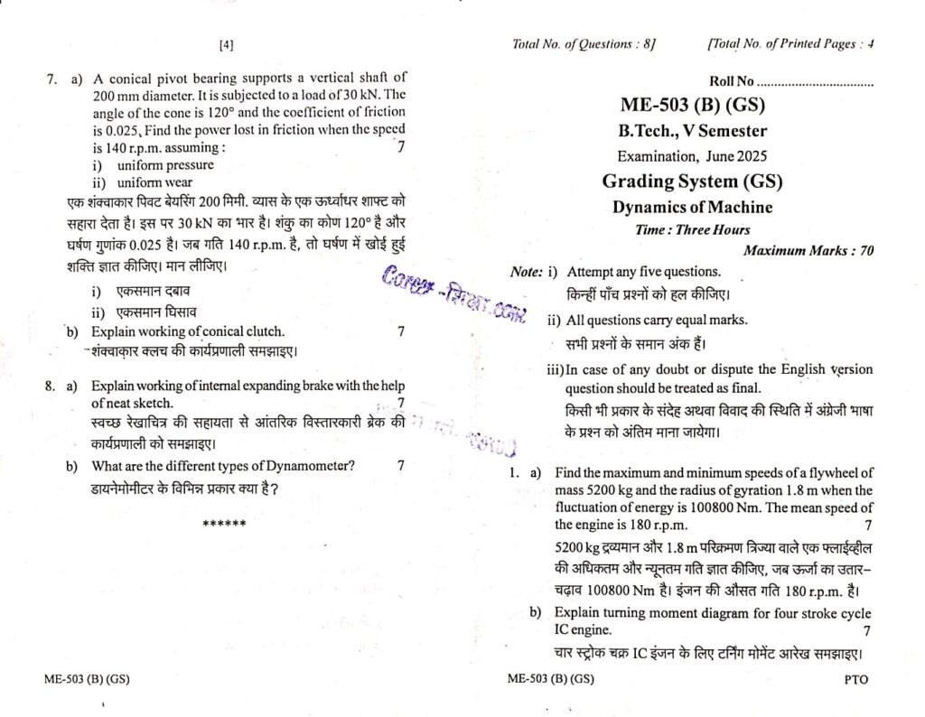RGPV Previous/Old Year Question Paper ME-503(B) Dynamics of Machine (DOM) (B.Tech.)