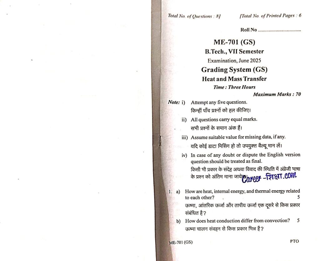 ME-701 Heat and Mass Transfer, (JUne-2025)