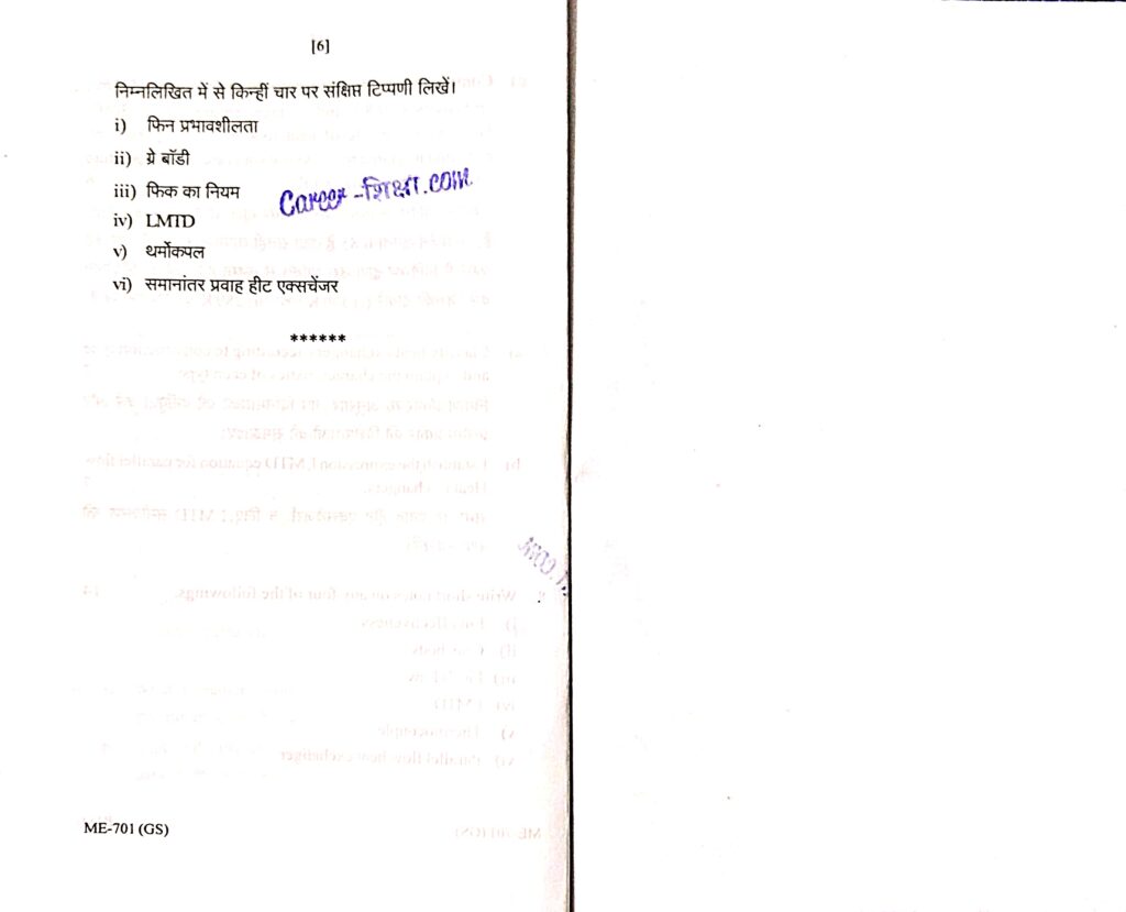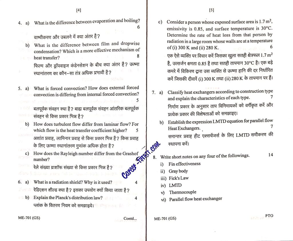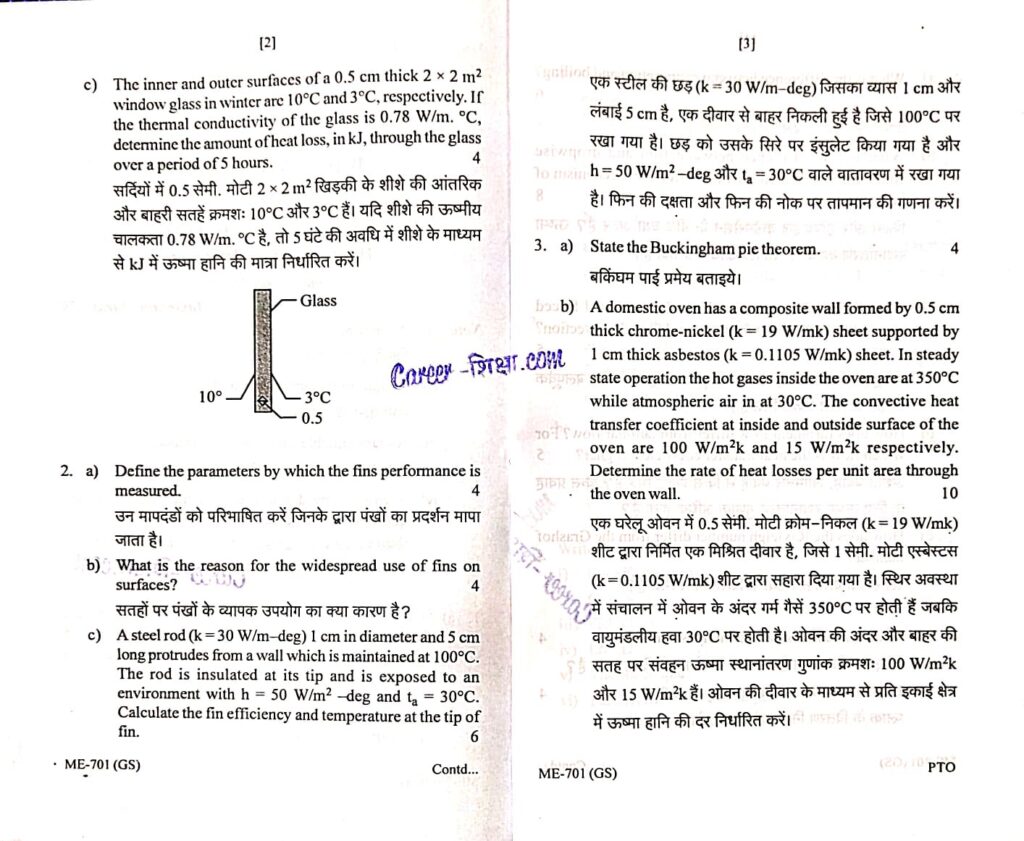 RGPV Previous/Old Year Question Paper ME-701 Heat and Mass Transfer (B.Tech. VII Semester) for Mechanical Engineering Branch