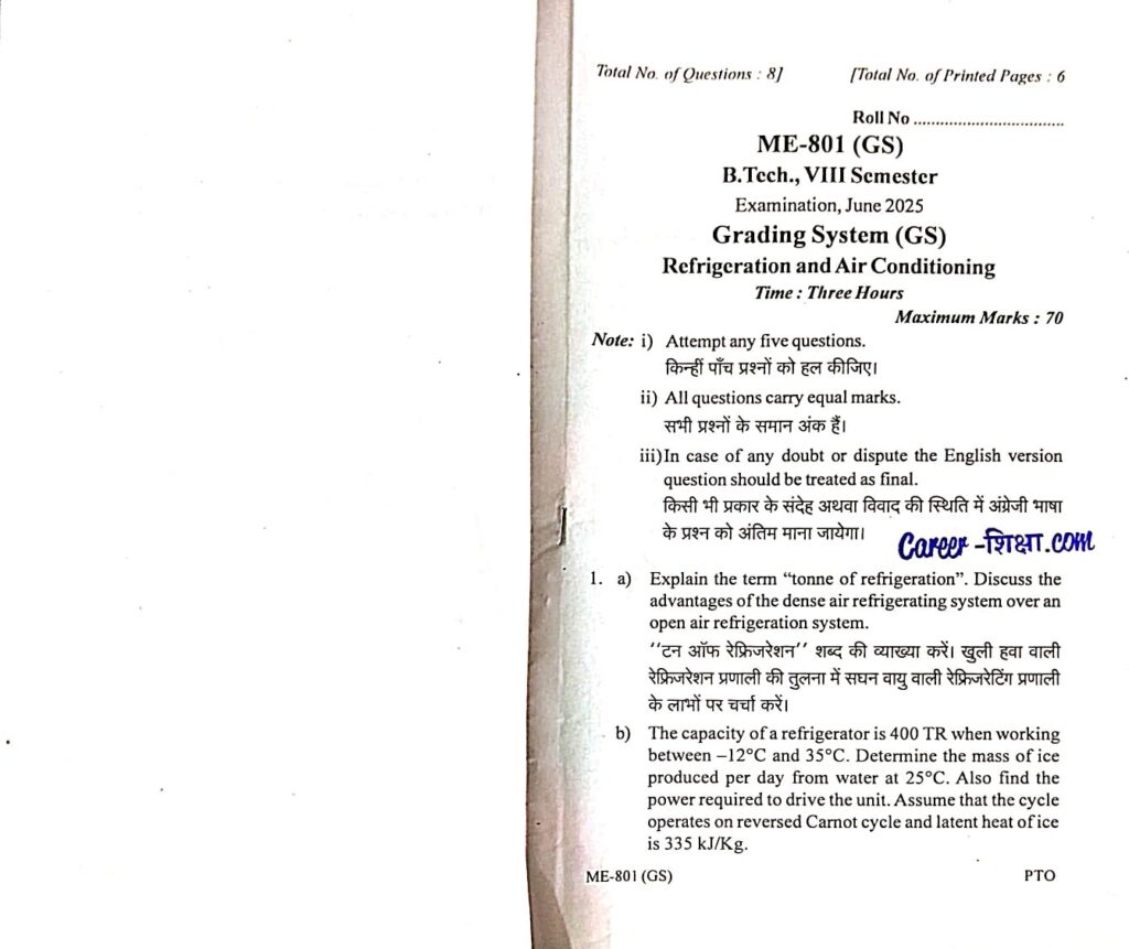 ME-801 Refrigeration and Air Conditioning, (June-2025)