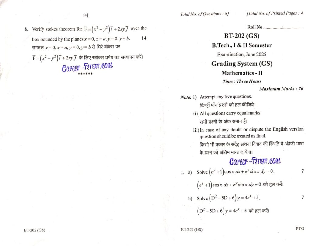 B.Tech. I & II Semester RGPV – Previous(old) Year Question Papers (BT-202) Mathematics-II (M-2)