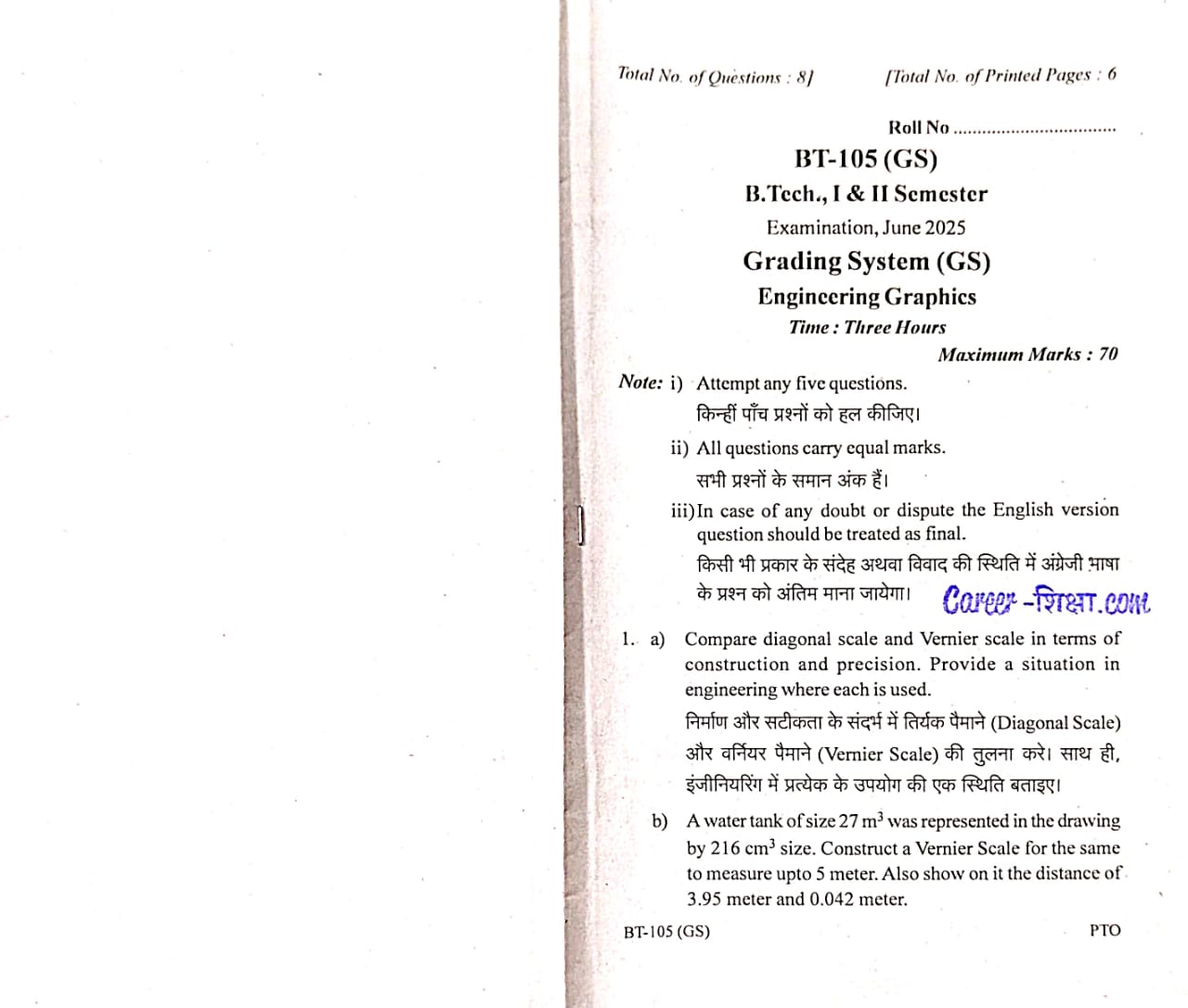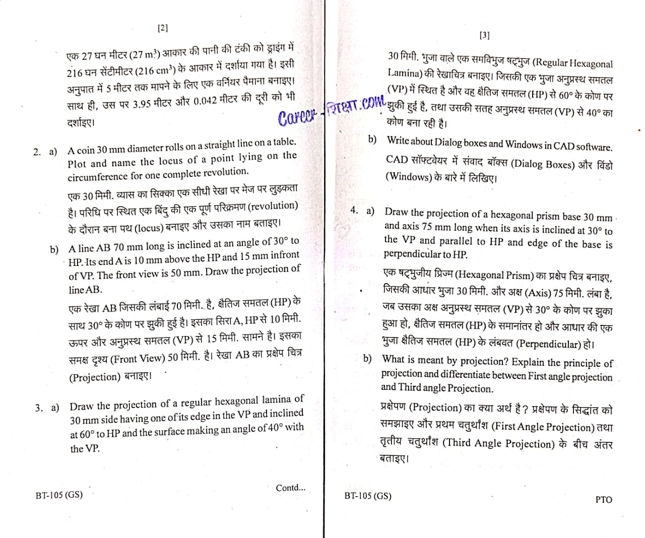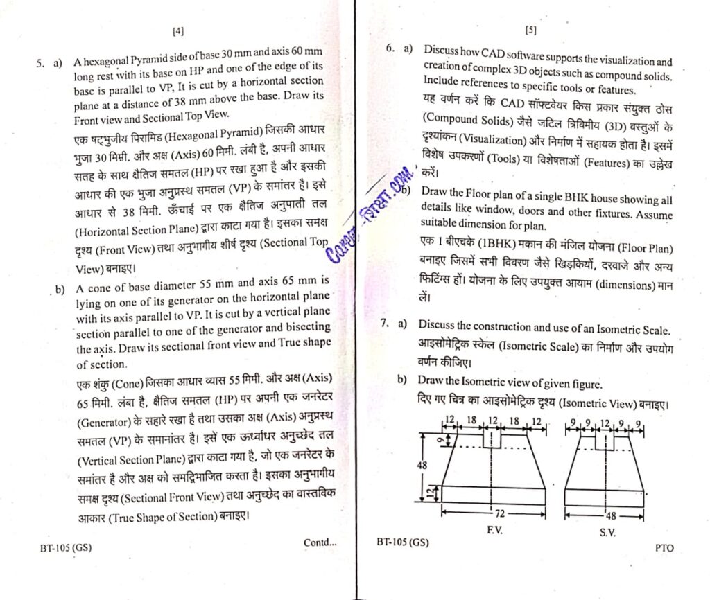 BT-105, Engineering Graphics, (June-2024)