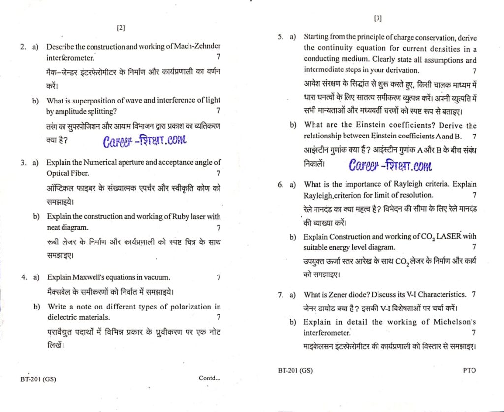 B.Tech. I & II Semester RGPV – Previous(old) Year Question Papers (BT-201) Engineering Physics